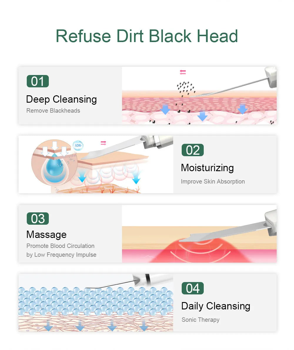 Deeply clean your skin through high-frequency vibration, the beauty apparatus can deeply clean the residual dirt in the pore depth, avoiding clogged pores to reduce blackheads and acne.